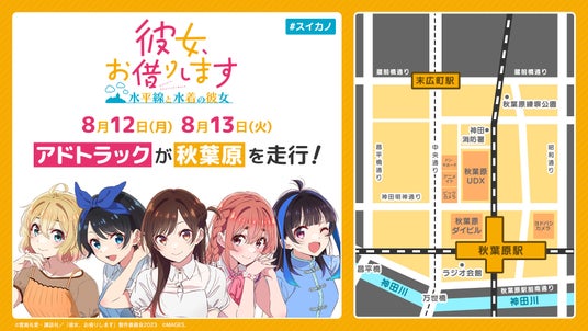 『彼女、お借りします ~水平線と水着の彼女~』について、8月12日(月)8月13日(火)の期間限定で、秋葉原にて本作のアドトラックの走行が決定しました。