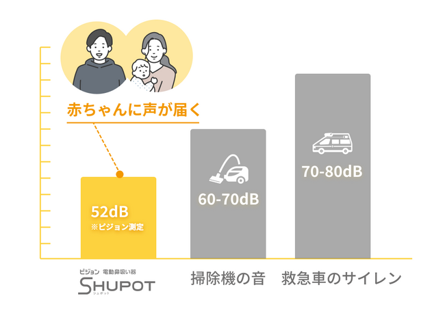「電動鼻吸い器SHUPOT」をご利用いただくことにより、ご家庭で安心かつ効果的に赤ちゃんの鼻水のケアをしていただくことができます。赤ちゃんがいつも快適な時間を過ごせることを願い、想いを込めて開発いたしました。