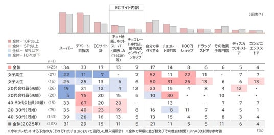 物価高に反してECサイトやチョコレート専門店は増加傾向、自分での手作りは昨年比減少傾向となった。
