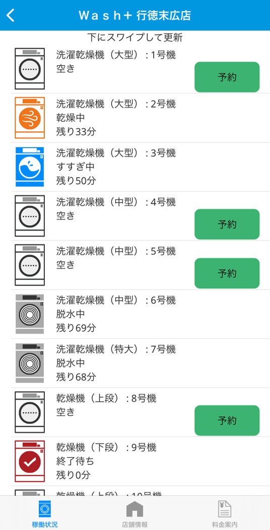 リアルタイムで「終了まであと〇分」が分かり終了するとアプリに通知が届くので待ち時間を有効活用できます。