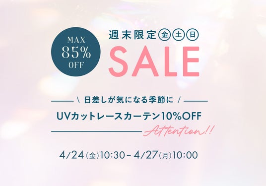 パーフェクトスペースカーテン館は毎週末にカーテンやラグをお得に購入いただける週末セールを開催しております。今週は、紫外線をしっかりカットしながら、おしゃれなお部屋づくりを叶えてくれるUVカットレースカーテンが10%OFF!その他最大85%OFFのカーテンもご用意しております。