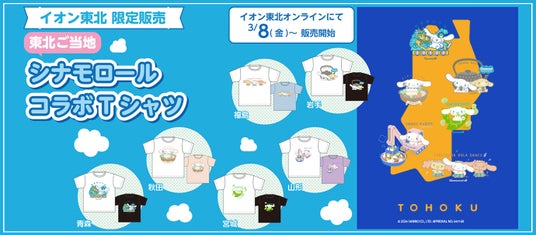 この度、株式会社あすなろ舎(本社:神奈川県大和市、代表取締役社長:石川浩三)は、株式会社サンリオの大人気キャラクターたちと、北海道・東北・九州の名所や名産品とコラボした「ご当地 サンリオキャラクターズ コラボTシャツ」を3月8日(金)より、イオン北海道オンラインショップ、イオン東北オンラインショップ、イオン九州オンラインショップの各WEBサイトにて限定発売いたします。