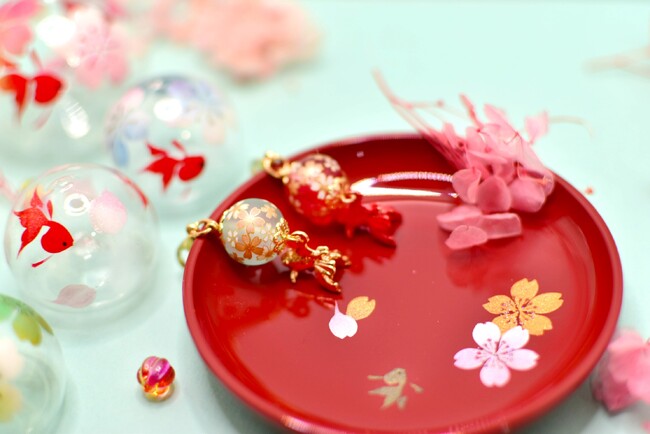 お箸やスプーン、風鈴やグラスなど、様々な和雑貨が揃っています。すべて手描きによる金魚の絵付けが綺麗な本商品も、春の季節は金魚×桜の絵柄をご用意しております。