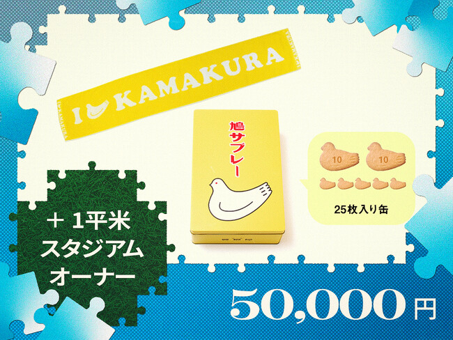 【3】1平米スタジアムオーナー + 鳩サブレー25枚缶入&鎌倉応援タオルマフラー