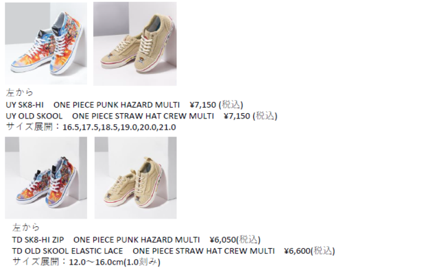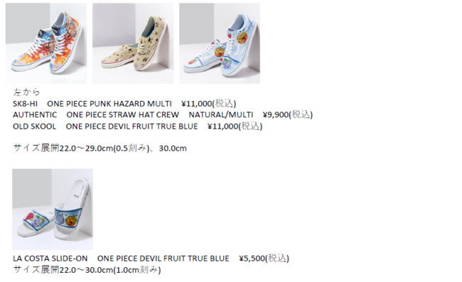 Vans x One Piece Collectionは、2022年11月11日(金)よりAPACのVans StoreとVans取扱一部店舗にて販売開始予定です。Vans.comと公式ソーシャルメディアチャンネルで最新情報をチェックしてください。一緒に“宴”に参加しましょう。