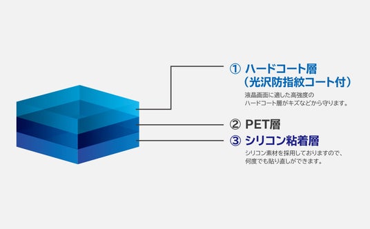 光沢防汚コーディング付きのハードコートを施していて、指紋等の汚れがつきにくいフィルムです。