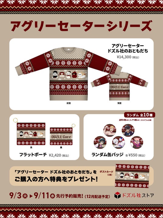 また、「アグリーセーター ドズル社のおともだち」をご購入の方へ、購入特典として「ポストカード(1枚)」をプレゼントします。