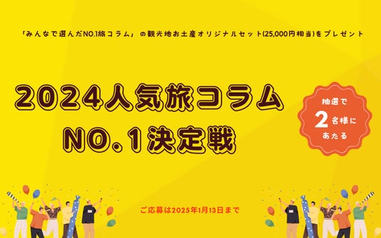 ビッグホリデー株式会社(本社:東京都文京区、代表取締役社長:岩崎 安利)は、2024年に実施したご当地お土産プレゼントキャンペーンでの旅コラムを対象とした「2024人気旅コラムNo.1決定戦」を2024年12月26日より開始いたしました。
