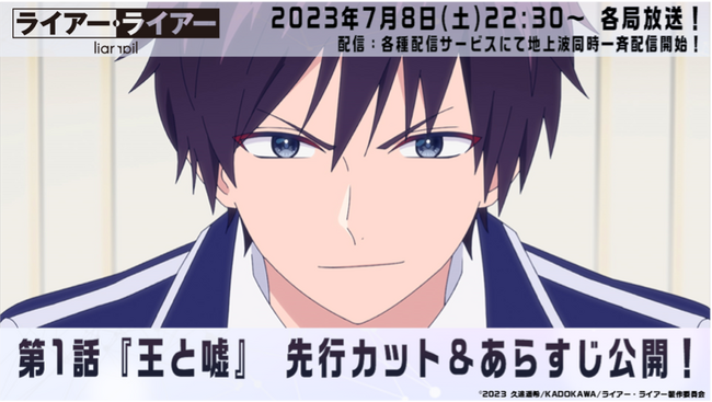 TVアニメ『ライアー・ライアー』が、7月8日から各局にて放送開始。また、各種配信サービスにて7月8日(土)より毎週土曜22時30分から地上波同時一斉配信を開始いたします。