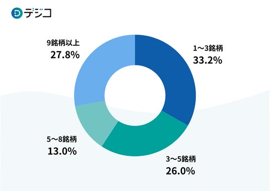 まず、株主に対して現在保有している個別株の銘柄数について尋ねたところ、1~3銘柄が最も多く、33.2%を占めました。一方で、66.8%の人は3銘柄以上を保有しており、そのうち27.8%は9銘柄以上を保有していることがわかりました。この結果から、多くの株主が分散投資を行い、リスクを分散させていることが推測されます。