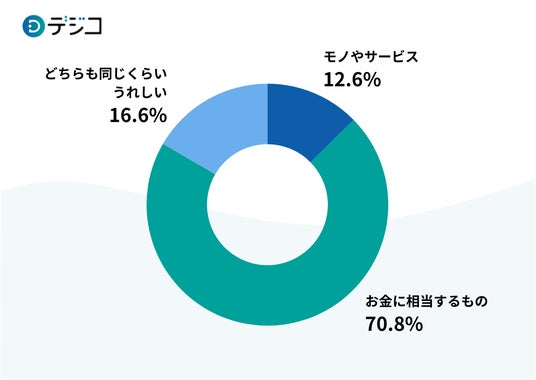 株主優待の内容について、「モノやサービス」と「お金に相当するもの(金券・商品券など)」のどちらがうれしいかを尋ねたところ、「お金に相当するもの」が全体の70.8%を占めました。この結果から、株主は「お金に相当するもの」に対して高い支持を示していることが明らかになりました。