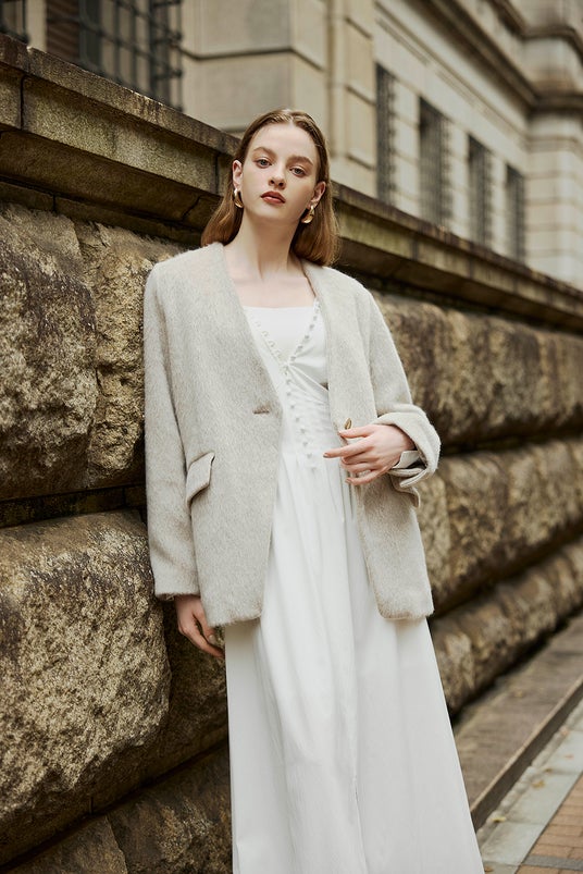 日本の尾州で織られた、上質なモヘヤ素材のジャケットコート