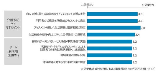 ICTを活用した予防プランの策定等により、地域包括支援センターの業務の質や効率化において効果が得られました。また、ICT等のデータ活用により、市町村にとっての地域の現状把握や課題抽出、施策検討に効果的であることを確認しました。