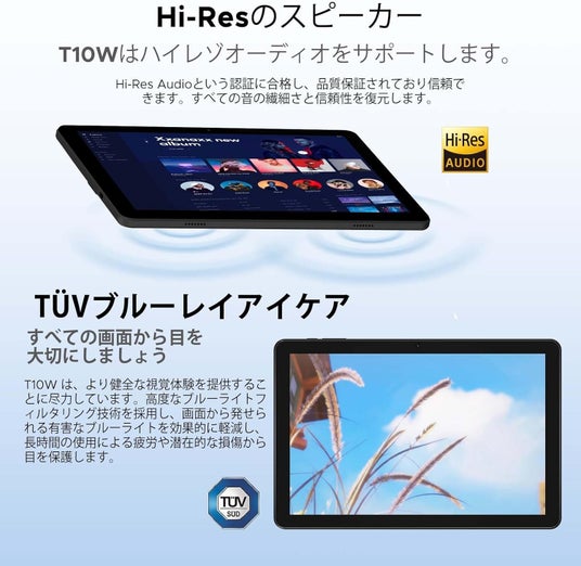 DOOGEE T10W 10インチタブレットは、10.1インチのIPS HDディスプレイを搭載し、解像度は1280x800です。鮮明な表示と豊かな色彩で、視覚体験を強化します。78%の画面占有率と全視野角設計により、このSIMカードフリーデバイスで映画やウェブ閲覧が没入感たっぷりで楽しめます。さらに、TUV SUDの低ブルーライト認証を取得しており、長時間使用しても目の負担を軽減します。
