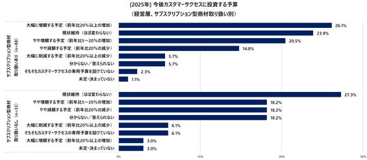 図2:[2025年] 今後カスタマーサクセスに投資する予算(経営層、サブスクリプション型商材取り扱い別)