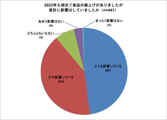 相次ぐ食品の値上げについて、89%が「家計に影響している」と回答しています。それに伴う悩みについては、商品の買い控えや栄養面の不安、献立のマンネリ化など多岐にわたっています。