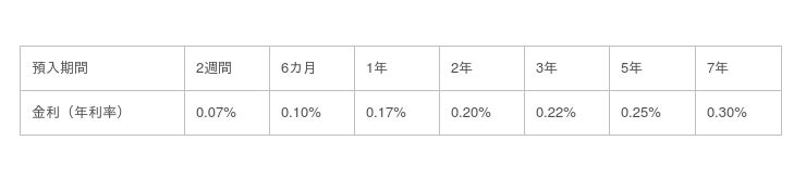 ※ 上記金利は税引き前の年利率です。預入期間7年の税引き後の金利は年0.239%となります。