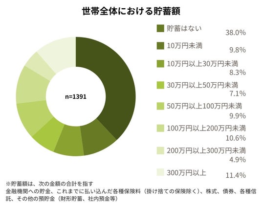 さらに、世帯全体の貯蓄に関して、「貯蓄はない」と回答した人が最も多く、急な出費や将来への備えができない状況が懸念されます。