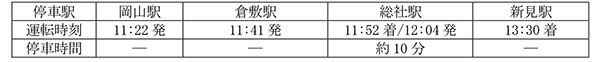 ・地酒列車(上り)の総社駅停車中には特産品の販売などをお楽しみいただきます(予定)。