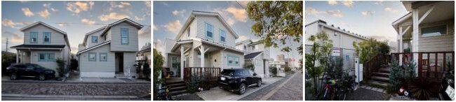 三郷中央駅徒歩5分に位置する3棟の平屋建て分譲住宅です。地上4階建ての建物と外環自動車道に挟まれた立 地環境のため、敷地を大きくとり、平屋建てとすることで空間にゆとりを生み、公園の中のような住空間を形成しました。この開放空間は街に対しても開かれる視覚的な効果を期待し、住民の方々も緑や景観維持に努めて、良好な街並み景観を維持しています。また、電線地中化エリアの利を活かし、無電線によるすっきりとした景観も実現。負の立地条件ではありますが、開放感が溢れ、空の広がりを思い出すことのできる街並みとなっています。夜間の街並み醸成にも配慮し、センサーによる自動点灯LED電飾による灯りのいえなみ協定を行い、街の防犯対策に寄与しています。