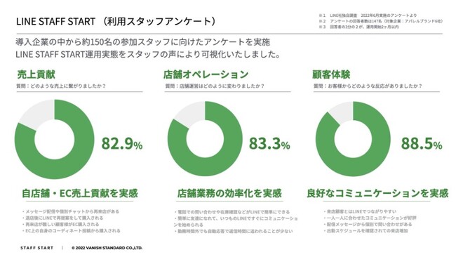株式会社バニッシュ・スタンダード(本社:東京都渋谷区、代表取締役:小野里 寧晃)は、株式会社デイトナ・インターナショナル(本社:東京都渋谷区、代表取締役:佐々木 聡)にLINE株式会社(本社:東京都新宿区、代表取締役社長:出澤 剛)と共同開発した新サービス「LINE STAFF START」の提供を開始しました。