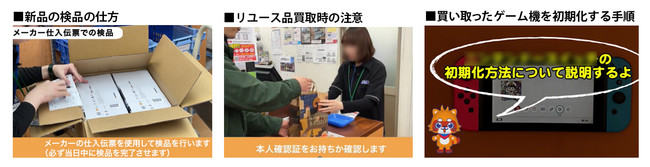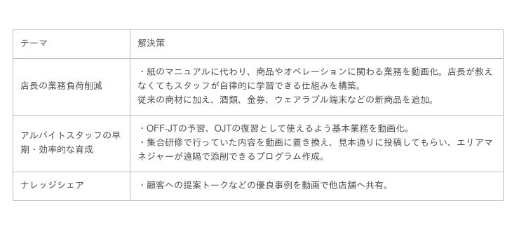 ▲仕入れ・買取・販売などに関わる基本的な業務を動画化し、店長の負荷を削減、スタッフのスキルアップや