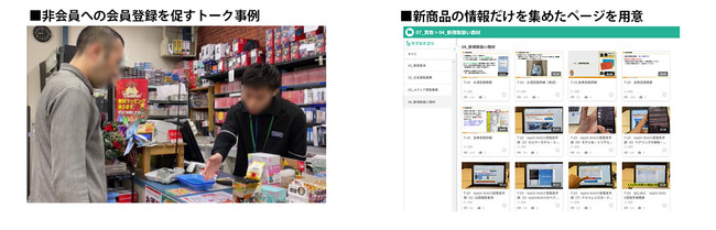 ▲おすすめトークの優良事例を他店舗にも共有 ▲酒類や金券など、新商材の手続きや注意点を解説