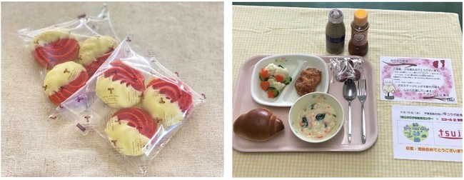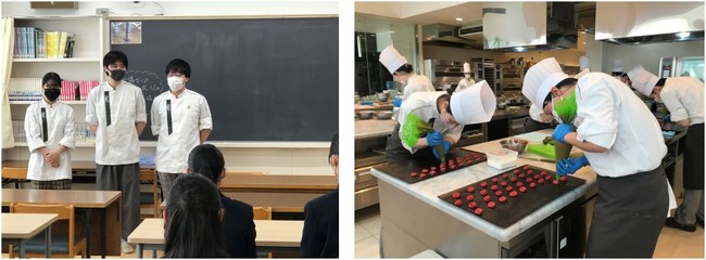 食のプロを育成する教育機関 エコール 辻 東京(東京都国立市、校長:百野浩史、辻調グループ)は、国立市立学校給食センターとのコラボレーション企画で、同市内にある市立中学校3校の全生徒を対象に、卒業や進級のお祝い献立として「お祝いクッキー」1500人分を提供しました。中学3年生の最後の給食日にあたる3月16日には、本校の学生が市立国立第一中学校にお邪魔して、クッキーの製造工程をまとめたビデオを各教室で上映し、お祝いメッセージも添えました。