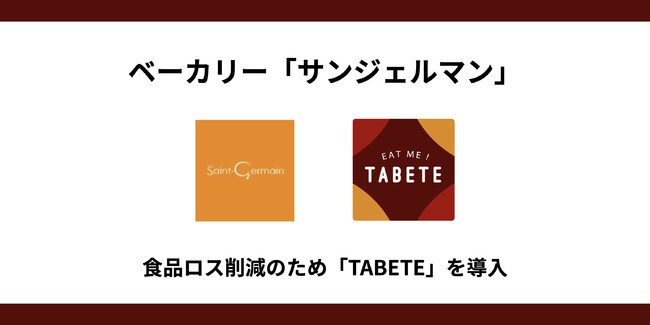 株式会社コークッキングが展開するフードシェアリングサービス「TABETE(タベテ)」が、株式会社サンジェルマンが運営するベーカリー「サンジェルマン」各店に導入されました。