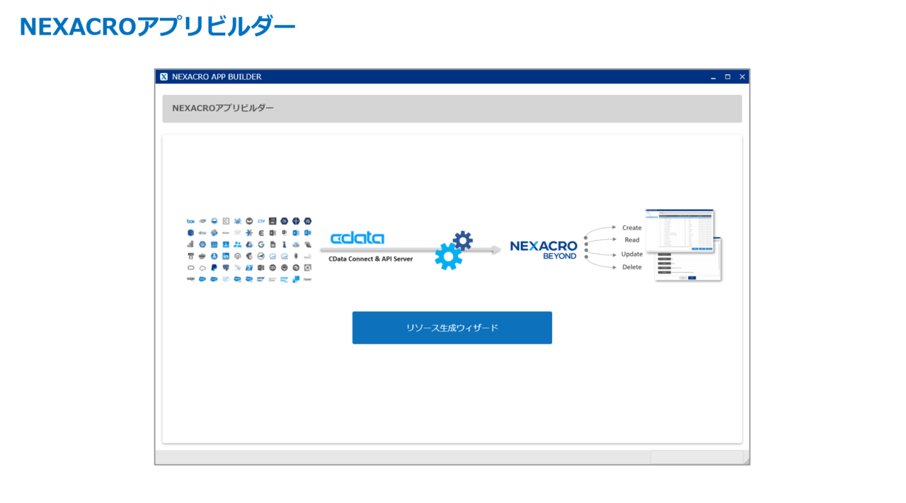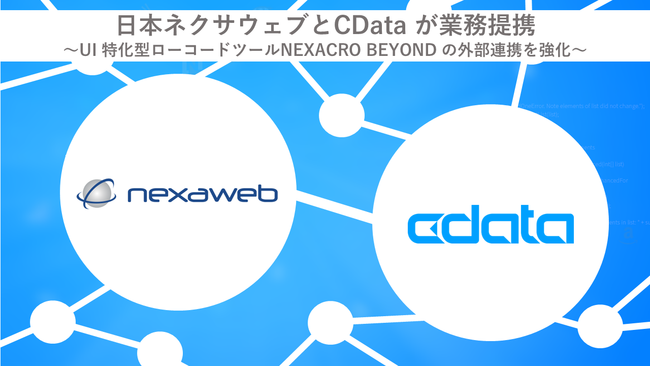 2022年8月3日、CData Software Japan 合同会社(本社:アメリカノースカロライナ州、日本オフィス:宮城県仙台市、代表社員 職務執行者 疋田 圭介、以下CData)は、 日本ネクサウェブ株式会社(東京都千代田区、代表取締役 CEO 金 星空、以下ネクサウェブ)と業務提携し、ローコードUI / UX基盤『NEXACRO BEYOND』と『CData Connect Cloud』および『CData API Server』の相互運用性提供を開始したことを発表しました。本提携により、NEXACRO BEYOND から100+ のSaaS / DB に双方向連携するアプリをローコード生成可能になり、企業のローコードアプリ開発をUI、データ双方から効率化できます。
