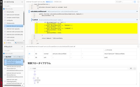 システムのソースコードを基に、AIが内部仕様・外部仕様を可視化し46種類のドキュメントを生成