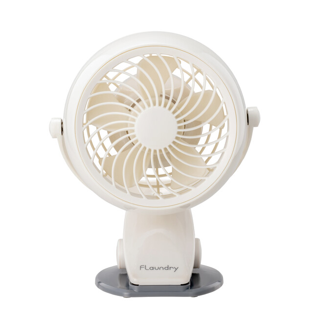 『フランドリー・クリップ式サーキュレーター』は、大型のクリップを一体型にしているので、物干しスタンドのパイプ部分などに安定して設置することができるランドリー用サーキュレーターです。高さ約19cmと場所を取らずコンパクトで、また約285gと軽量なので簡単に取り付けできます。ファンの向きは上下と回転で調節します。180分タイマーが付いており、スイッチの切り忘れを気にすることなく外出、就寝できます。底面には滑り止めが付いているので床置きも可能です。電源にはアルカリ乾電池だけでなく、USB-ACアダプター電源(別売)が使用できます。自宅のコンセントを利用すれば電池切れの心配もなく、連続運転可能です。