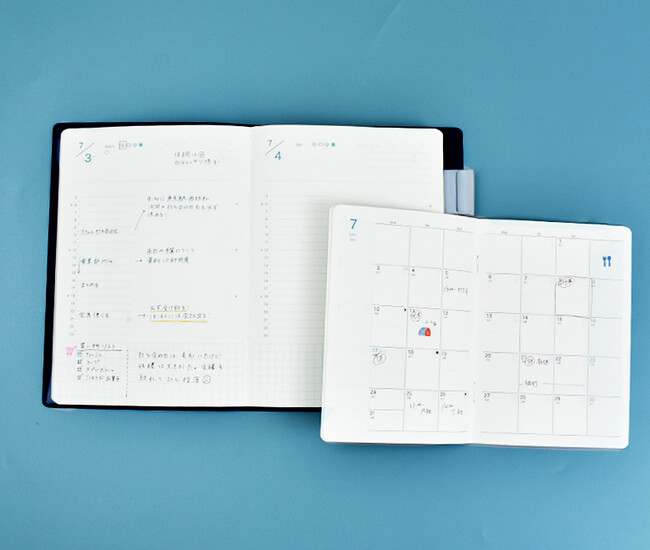 当製品は下半期(2023年7月-12月)のデイリー手帳(B6)1冊と小型ミニマンスリー手帳(A6)1冊がセットになっています。
