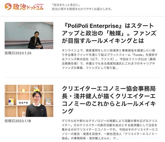 ・「政治をもっと身近に。」を理念とし、生活に関わる政策の解説記事を発信