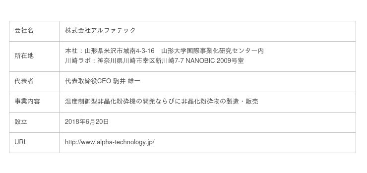 株式会社ツクリエ(本社:東京都千代田区 代表取締役:鈴木英樹)が共同事業体として運営する、神奈川県川崎市・新川崎地区にある技術系スタートアップのオープンイノベーション拠点『かわさき新産業創造センター(KBIC)』のNANOBICに入居している株式会社アルファテック(本社:山形県米沢市 代表取締役:駒井雄一 以下、アルファテック)は、水を使わずに一瞬ででんぷん/セルロース非晶化させる技術「Amorfast(R)(アモルファスト)」のスケールアップに適した機構を開発し、この度、山形大学有機材料システム事業創出センター(YBSC)にて大量生産に向けた実証を開始しました。