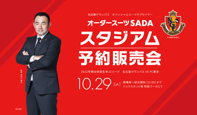 初回19,800円(税込21,780円)~オーダースーツを提供する株式会社オーダースーツSADA(本社:東京都千代田区、代表取締役社長:佐田展隆)は、2022年10月29日(土)に、名古屋グランパス オフィシャルスーツの予約販売会&ガラガラ抽選会を、開場後~試合開始(15:00)まで、豊田スタジアム バックスタンド側特設ブースにて開催いたします。オーダースーツSADAは、オフィシャルスーツサプライヤーとして、名古屋グランパスを応援しています!
