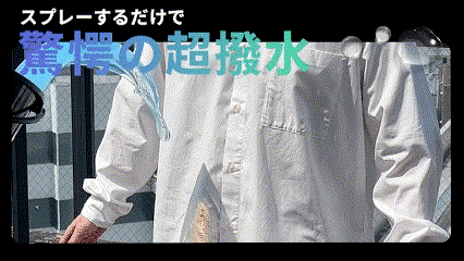 撥水効果の持続性、通気性の維持、速乾性など、今までの防水スプレーの不満を全て解決するスプレーが完成しました。