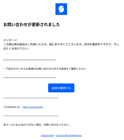 ユーザーが問い合わせた内容への回答を見逃さないようにするため、オペレーターからの返信があったことをユーザーにメールでお知らせする機能を追加しました。