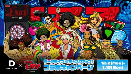全国のダーツライブ3設置店で期間限定コラボレーションゲーム『ディスクアップ501』(以下、対象ゲーム)を配信します。 『ディスクアップ501』を3回プレイすると、キャンペーン限定のデジタルコンテンツが獲得できます。