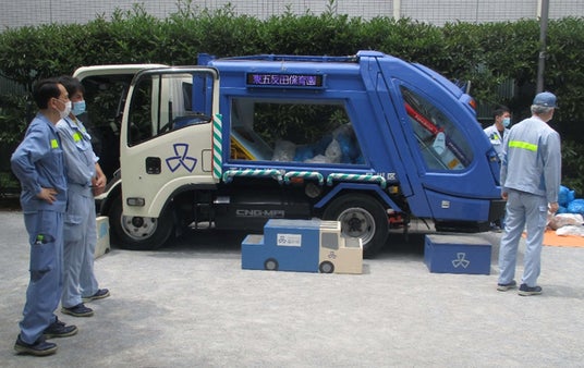 中身が見えるごみ収集車「スケルトンパッカー車」を間近に