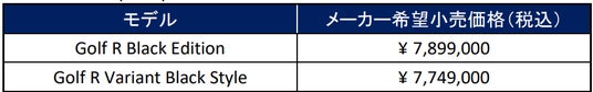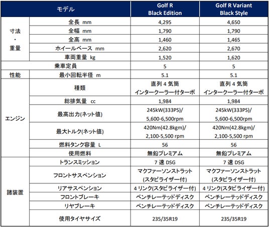 (全国限定: Golf R Black Edition 403台/Golf R Variant Black Style 214台)