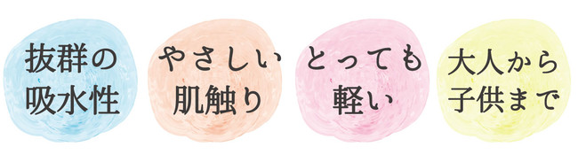 「デザインが好きなのに使いにくい、、、。」「子供が喜んで使えるかわいいタオルが欲しい」「もっと長くタオルを愛用したい」「吸水して柔らかいタオルが欲しい」などの声から、子供から大人まで使えるかわいくて、機能性にも優れた素敵なタオルをつくりお届けしたい。