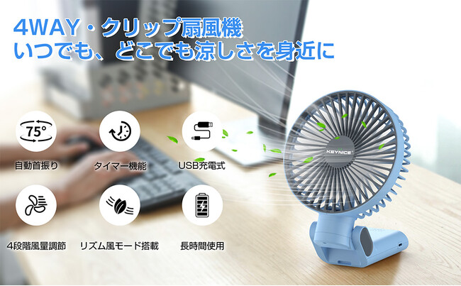 2024/04/17~2023/04/22開催される期間限定セールにて最大20%OFFでKEYNICE クリップ扇風機がお買い得!是非、このチャンスを見逃さないでください!