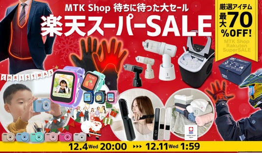 生活を豊かに、便利に、そして楽しくするアイテムの企画・開発・販売を手掛ける三金商事株式会社(本社:大分県大分市、代表取締役社長:田中 新一)が運営する、MTK SHOP 楽天市場店は、楽天スーパーSALEにて、今年最後の大特価セールを開催。