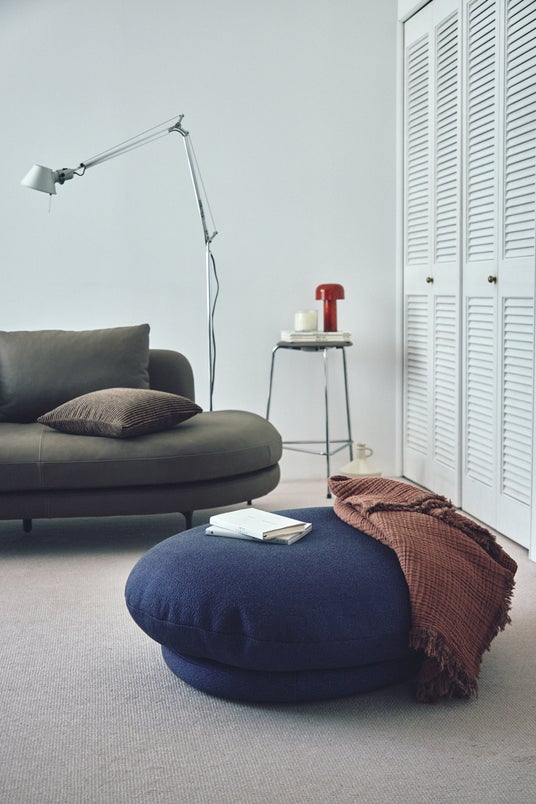 丸くて愛らしいフォルムのBUFFI(バッフィ)は、適度な柔らかさと弾力で、座る人の体型や姿勢に心地よくフィットするクッションソファです。