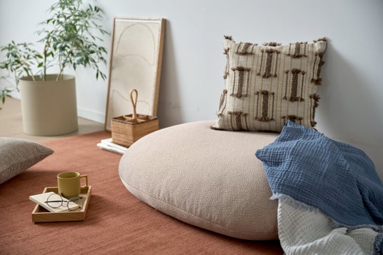 丸みを帯びた愛らしいフォルムは、モダンなインテリアにもよく合います。体が沈み込みすぎない安心感のある座り心地が、床で過ごすくつろぎの時間をより豊かに変えてくれます。