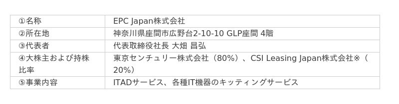 当社の連結子会社で米・IT機器リースを手掛けるCSI Leasing, Inc.(以下「CSI」)は、グループ会社のEPC, Inc.(以下「EPC」)を通じ、世界20拠点以上でITADサービスを展開しております。今般、TRYがEPCのノウハウを活用して、日本国内でもグローバル標準のITADサービスを提供するため、CSIから20%の出資を受け、社名もEPC Japan株式会社に変更いたします。これにより、従来のリース満了資産に加えて、新たにお客さま所有のIT資産にも高品質なITADサービスを提供できるなど、当社グループの競争力を飛躍的に高めることができるものと考えています。