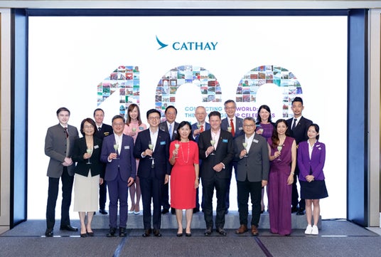 キャセイグループ(本社:香港、最高経営責任者:ロナルド・ラム)はこのほど、キャセイパシフィックと香港エクスプレスが6月中に世界100都市への旅客便就航を達成することを記念し、香港のアイランド・シャングリ・ラ・ホテルにてこの重要な節目を祝う式典を開催しました。