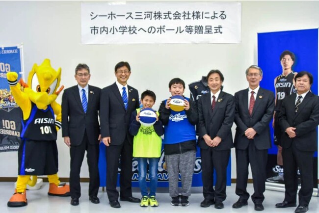 シーホース三河のサスティナビリティプロジェクト「Be With」の一環として実施している、西三河地域の小学校へバスケットボール、ビブスの寄贈を、知立市内の小学校へ実施いたしました。