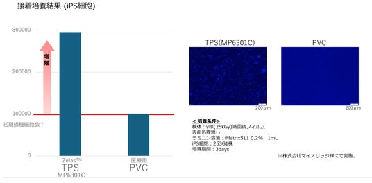 当社は、長年にわたり医療用コンパウンド樹脂Zelas(TM)の高度な配合・コンパウンド技術を蓄積してきました。スチレン系熱可塑性エラストマーであるZelas(TM) TPSは、優れたゴム弾性を有し、医療機器や医薬品包装用のチューブでの実績を有しています。再生医療分野では、iPS細胞や間葉系幹細胞などの高品質な細胞培養特性が求められますが、Zelas(TM) TPSはPVC(ポリ塩化ビニル)と比較して優れたiPS細胞増殖性を示します。優れた培養特性に加え、オートクレーブ滅菌およびγ線滅菌(25 kGy)に対応可能な点や熱溶着性など、需要が高まる閉鎖系細胞培養回路※の構築に欠かせない機能性が評価され、今回の採用に至りました。
